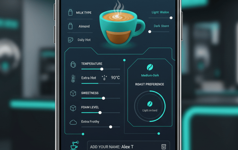 Bean Origin & Roast Profile: Select from our direct-trade origins, each with AI-calibrated roasting profiles.